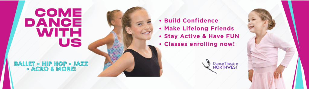 From your child’s first class to their graduation performance, your child will thrive at DTNW! At DTNW, our classes are “More Than Just Great Dancing!”. Your dancer will go beyond technique and develop important life skills, learning to be respectful, confident, and conscientious young people who share their gifts and talents with the community.